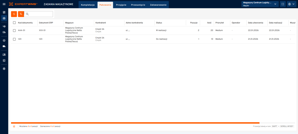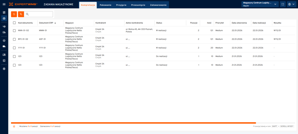 Zadania magazynowe